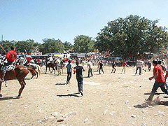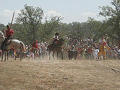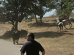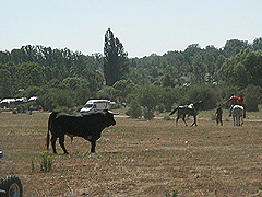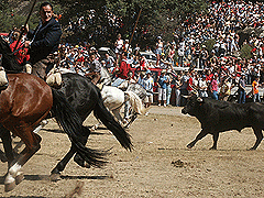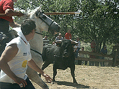 l sol estuvo presente toda la jornada de ayer en el Monte Valonsadero, durante la celebración de la Saca. Y varios miles de sorianos abarrotaron el paraje, ocupado ocasionalmente por varios chiringuitos y una pantalla gigante que se instaló para poder apreciar con todo lujo de detalles el espectáculo.