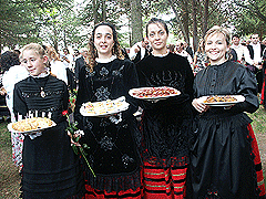El Domingo de Calderas, día grande de las fiestas patronales, la ciudad se engalan de flores y hermosos trajes. Aunque el calor de los primeros días de julio hace más complicado llevar la vestimenta tradicional de piñorra para desfilar durante la mañana, todavía alguna jurada –las más valientes- se atreve con el traje.