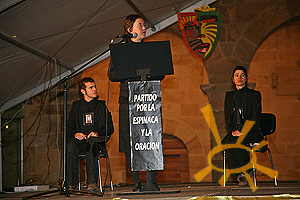 El pregón de carnaval de este año ha sido mucho más dinámico que años pasados. Para empezar, el evento duró mucho más. El grupo de teatro soriano Juglaresca realizó una parodia política, en la que dos partidos políticos se disputaban el mandato del carnaval. El Partido por la Espinaca y la Oración, prometía unos carnavales llenos de penitencia, mientras que el partido Amigos del Pecado prometían carne, alcohol y desenfreno para estos días. Como no podía ser de otra forma, ganaron los Amigos del Pecado.