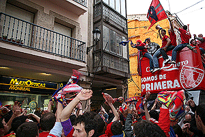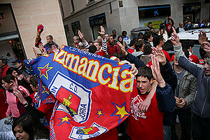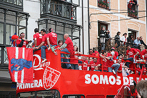 Miles de aficionados y simpatizantes se echaron a la calle, tiñéndola de rojo, para celebrar el ascenso a primera división del equipo soriano. A las 7 de la tarde los jugadores directivos y demás integrantes del equipo, partieron desde los pajaritos en el autobús habilitado para la ocasión, que desfiló por las calles céntricas hasta llegar a la plaza mayor, donde eran esperados en el consistorio por las autoridades y la banda de música.