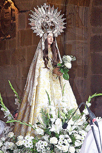 En la última mañana de las fiestas impera la elegancia. La mayoría de los jurados viste traje negro y las juradas mantilla y peineta. Todos ellos se reúnen, con la autoridades, en la misa de la Ermita de la Soledad. Después cuadrillas y peñas desfilan hasta la Plaza Mayor donde darán flores como ofrenda a la Virgen de la Blanca.