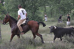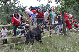 Nueve fueron los novillos que salieron de la Vega de San Millán. Tras un par de vueltas por la vega, uno de ellos enfiló hacia en Hotel Valonsadero, siendo imposible recuperarlo para la salida. El resto salió arropado por los caballistas, y se mantuvieron juntos hasta comenzar la subida entre los pinos, en donde la manada comenzó a fraccionarse. Poco a poco los caballistas fueron subiéndolos hasta concentrarlos en el nuevo descansadero de donde más tarde saldrían media docena hacia la ciudad. A pesar de que sólo llegaran dos novillos a la Chata, hay que destacar la estupenda labor de la asociación Amigos de La Saca y de la organización en general. Se apreció muy buena coordinación.
