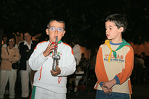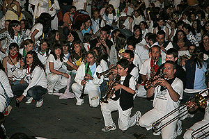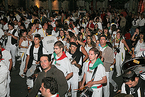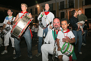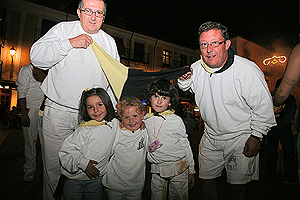 El último día de fiestas, desde las diez de la mañana las peñas se reúnen en la plaza de toros para preparar cada una su caldereta. Hay mucha tarea por delante, y el día es largo para los cocinillas, pero son fiestas y saben bien como pasarlo bien a pesar del trabajo. A eso de las 9 de la tarde, casi todas las calderetas están listas, y el resto de integrantes de cada peña acude para saborearlas. El ayuntamiento, que es el que reparte unos cincuenta quilos de carne a cada peña, también guisa una que ofrece a los que no poseen peña, que acompaño con chorizo, salchichas, pollo y demás, para que nadie se quedara sin hambre. Un servidor, pese a no ser de ninguna peña, tubo el placer de probar de varias, y hay que decir que todas distintas pero todas excelentes.