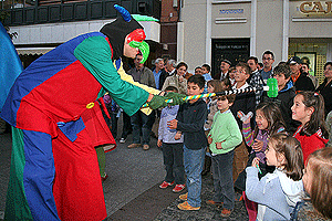 Los más peques son los protagonistas durante estos días, ya que aparte de Gigantes y Cabezudos a diario, castillos inchables y un montón e obras de teatro infantiles, estos también pueden disfrutar de pasacalles como el de las fotos, donde participan activamente en los juegos que les proponen los animadores. La compañía “JUGLARESKA” una vez más, logró dejar a los chiquillos encantados y a sus papis viéndolos con alguna que otra babilla.