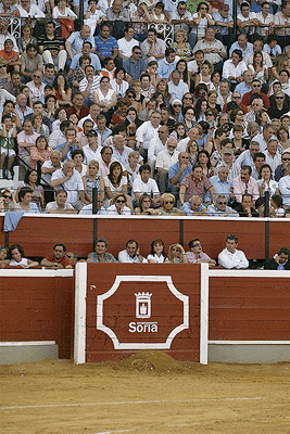 Domingo de toros: Multitud de sorianos y forasteros esperaban en las puertas de la plaza de toros para poder ver las corridas de toros. Aunque hacía algo de calor la plaza estaba abarrotada. Los toreros toreaban a los toros, aunque había alguno que no se lo ponia nada facil.