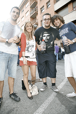Todos los los sanjuaneros estaban desperdigados por las cuadrillas para poder adquirir algun trozo de carne de los toros, todo ello acompañado de buen ambiente, música, y como no vino, mucho vino y ganas de diversión.