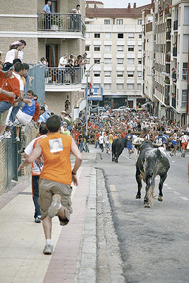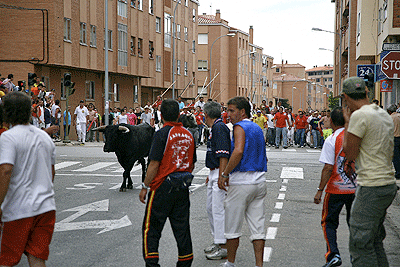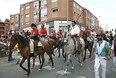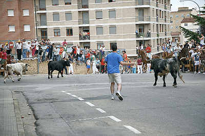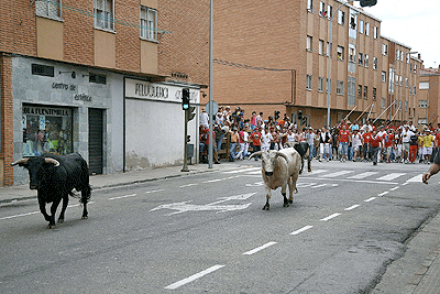 Con más de media hora de retraso, pues fue una labor difícil sacar a los toros de la Vega de San Millán, arranco el segundo trayecto de La Saca. El grupo se mantuvo hasta más de la mitad del trayecto donde se volvió a dividir, pero poco a poco se fue consiguiendo meter a los novillos hasta un total de ocho. De ahí hasta Soria fueron llegando los novillos poco a poco. Se pudo comprobar que este año los novillos llegaron a las calles de la ciudad con mucha más energía que otros años, para el disfrute de mucho presentes que los esperaban. A pesar de que uno de ellos llegó cojo, ocho fueron los que al final entraron en la plaza, todo un record si lo comparamos con los años anteriores.