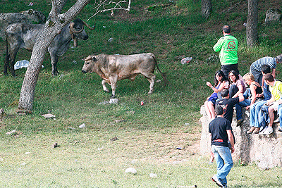 Aunque el ideal es un día soleado para La Compra, con el bochorno que hacía en los días anteriores se agradeció enormemente las nubes que suavizaron el clima. A pesar de ello el calor era intenso, por lo que se agradecían los tragos de la bota y las frescas cañas de los chiringuitos. La comprilla acabó con 10 toros en los corrales de la forma tradicional, y con un par de ellos que tuvieron que ser subidos en camión. La tarde fue más movidita, sobre todo para la Cruz Roja, que tuvo que atender durante el día a 87 personas y trasladar al hospital a ocho, dos de ellas con graves heridas por asta de toro, entre los que se encontraba el soriano de 47 años al que el toro le fracturo la tibia al atravesarle la pierna con el cuerno, momento que causó gran impacto a los asistentes.