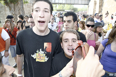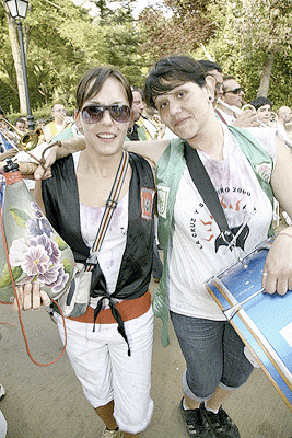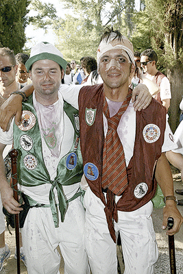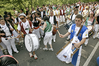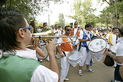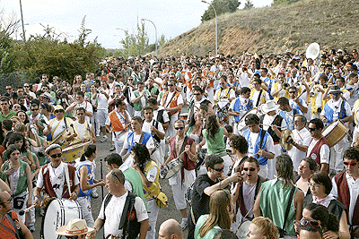 El río de gente atraviesa por el puente al tranquilo Río Duero, que no entiende de sanjuanes aunque si lo haga de inviernos cuando se hiela. El de gente, mucho más bullicioso y agitado, al ritmo de un cancioncilla que no recuerdo como es, y eso que creo haberla oído más de una vez. Lo que si recuerdo es como hipnotiza a los sorianos que se dirigen en fila hacia el paseo donde a diferencia del cuento de Amelín no se sumergen en el agua del río, sino en el vino de sus botas, garrafas o de cualquier enser que pueda contener el líquido mágico. En la pradera, sigue el baile de la mano de la deliciosa Banda Municipal que no se cansa de tocar bis a petición de los presentes.