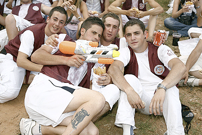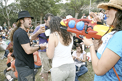 El río de gente atraviesa por el puente al tranquilo Río Duero, que no entiende de sanjuanes aunque si lo haga de inviernos cuando se hiela. El de gente, mucho más bullicioso y agitado, al ritmo de un cancioncilla que no recuerdo como es, y eso que creo haberla oído más de una vez. Lo que si recuerdo es como hipnotiza a los sorianos que se dirigen en fila hacia el paseo donde a diferencia del cuento de Amelín no se sumergen en el agua del río, sino en el vino de sus botas, garrafas o de cualquier enser que pueda contener el líquido mágico. En la pradera, sigue el baile de la mano de la deliciosa Banda Municipal que no se cansa de tocar bis a petición de los presentes.