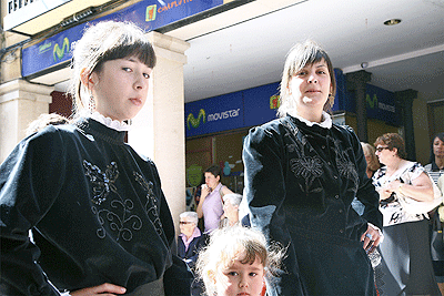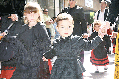 A pesar del calor que acompañaba este dia, todas las cuadrillas desfilaban con sus trajes típicos, músicos, y jurados. La gente esperaba ansiosa a lo largo del Collado y parque de la Alameda para ver el desfile.