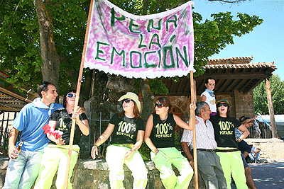 A las 11:30 todas las peñas del pueblo estaban en la Plaza de la Soledad a pesar del calor que hacia. Tanto la gente del pueblo como los visitantes desfilaron calle arriba hasta llegar a la Plaza Mayor, donde se produciría La Pingada del Mayo. Todo el mundo bailaba y desfilaba hasta llegar hasta la plaza, mientras los turistas capturaban instantáneas de este momento.