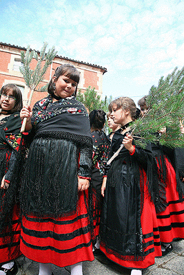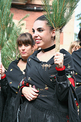 A las diez y media de la mañana el pueblo seguía animado y las mujeres se hacían con un pinocho. Tanto hombres como mujeres vestían los trajes típicos y esperaban en la Ermita de La Soledad donde se llevó a cabo la Misa rezada.