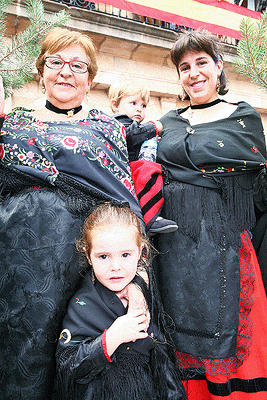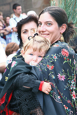 A las diez y media de la mañana el pueblo seguía animado y las mujeres se hacían con un pinocho. Tanto hombres como mujeres vestían los trajes típicos y esperaban en la Ermita de La Soledad donde se llevó a cabo la Misa rezada.
