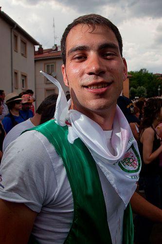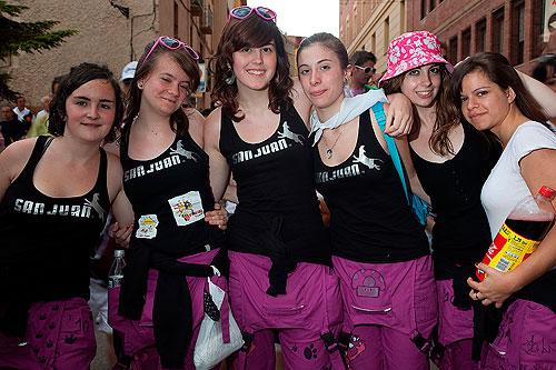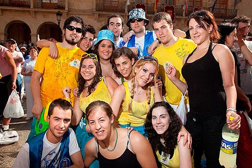 Bajada de las bailas desde la Plaza Mayor acompañados de las peñas y sanjuaneros con muchas ganas de jolgorio. Nada más sacar el bocadillo comenzó a jarrear, pero muchos son ya los sorianos que junto al bocata ponen es chubasquerillo que ya se sabe que mejor prevenir...