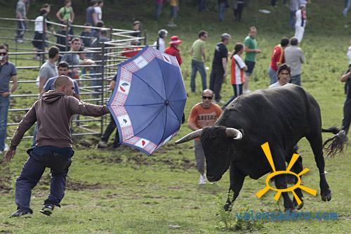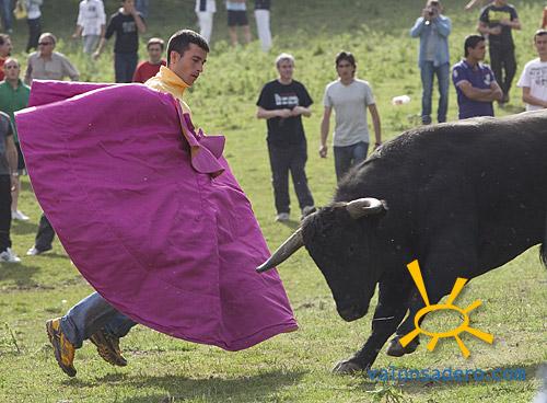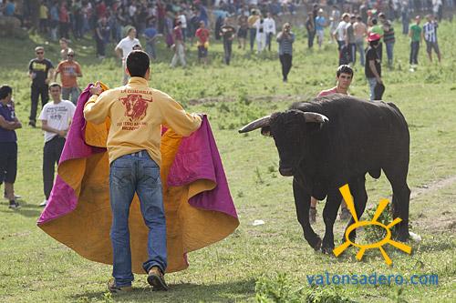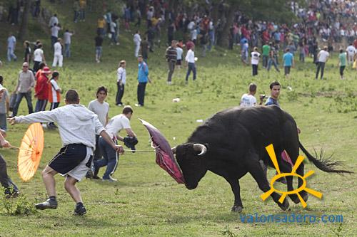 El alcalde, como hombre moderno que es, no tubo reparo en cambiar los pañales de su retoño para comenzar el lavalenguas limpito. Tras el desfile y la llegada a valonsadero, disfrutamos de un lavalenguas movidito, con unos toros muy poco familiares que no llegan a hacer manada y se disgregan por la cañada. Se pudo presenciar varias heridas por cuerno de toro.