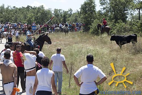 Este año, en el día y la hora mas emocionante del año para mi, no sentí nada, fue como una premonición de lo que pasaría segundos mas tarde cuando toros, caballos y gente subíamos la cuesta de la curva de la cañada. Un tendón de aquiles y unas fiestas de San Juan perdidas, pero en fin, a pesar de ir con el pie arrastras sin saber que tenía, me marque un reportaje completo de una saca que he de decir que ha estado dominada por la imprudencia. En las fotos se pueden ver los corredores y gente habitual que conoce el tema, pero también se pueden ver turistas, jovencitas que mejor que se hubiesen quedado en el chiringuito, y hasta ?padres? con niños pequeños dentro del recorrido con varios toros sueltos alrededor y sin peñasco alguno donde refugiarse. También he querido añadir la secuencia completa de una cogida para que se vea como se ceban estos toros, que ya nada tienen que ver con los antiguos novillos juguetones y, como se tensan para aplicar el máximo impacto en sus embestidas. Imagino que no concienciaré a nadie, pero al menos disfruten del reportaje de la ?mala pata?.