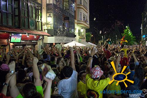 A mitad del desfile, la Policía Municipal intentaba abrir paso entre la cantidad de ciudadanos que ajenos a este, veían en las pantallas de los bares de la Plaza Herradores los últimos minutos del partido de la semifinal de la Eurocopa. La banda, y autoridades esperaban pacientes y de repente se desató el caos que se tragó a los Municipales. España pasaba a la final y era imposible que la Banda de Música, autoridades y jurados no se contagiaran de la alegría. Doble celebración, deslucida si cabe por la ausencia de la iluminación de fiestas en las calles, que no sabemos por que motivo no se han colocado, cuando son de bajo consumo y adquiridas recientemente. Reportaje este por lo tanto, con muchas dificultades.