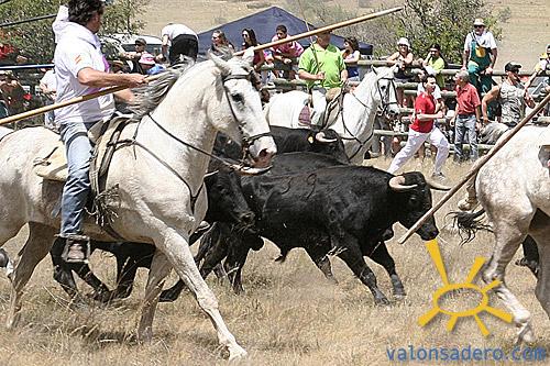 Cristina García nos ofrece unas tomas de varios momentos de La Saca, en la que entraron 11 novillos en todo un record comparándolo con los años anteriores. Podemos ver bellas imágenes conduciendo los toros, cogidas, caídas y la importancia que en algunos casos tienen los vehículos a motor, para reconducir los toros cuando los caballos no pueden.