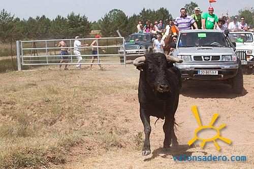 Desde la Plaza Mayor arrancó la comitiva hacia Valonsadero a la hora prevista. A las doce los novillos salieron como un tiro y abandonaron la cañada en manada, en lo que se denomina "una saca limpia". A pesar de que se suponía que este año no había apenas vehículos autorizados, no se recuerda una Saca con tantos vehículos con la insignia de autorizado, los cuales ante la impulsividad en algunos momentos de los caballistas, llevaron los últimos toros hasta la Vega de San Millán, donde estaban todos a las 2 menos cuarto.
