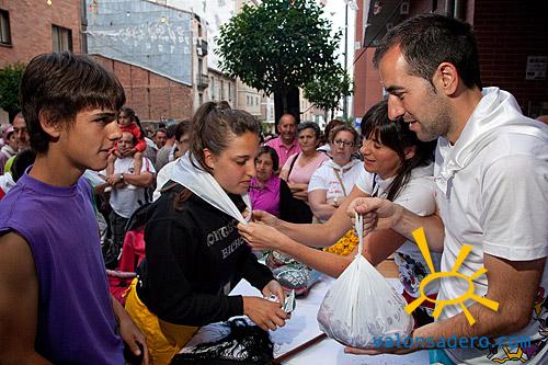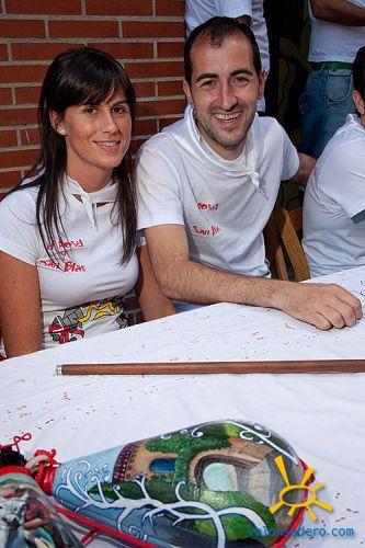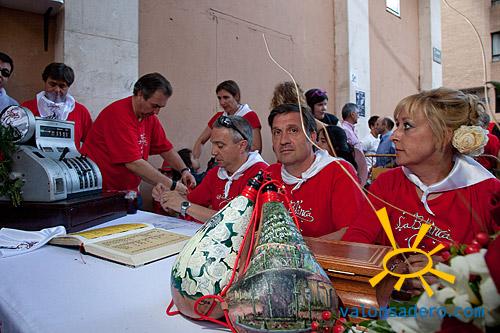 Recorremos varias cuadrillas donde las subastas van bastante rápido, "y es que queda mucha carne" comentan los jurados. Los subastadores, muchos ya clásicos de este día ponen la nota de color con sus gracias y su ritmo de subasta. Acabamos en la cuadrilla Santa Catalina, donde los sorianos más olímpicos se habían hecho cargo de la subasta. No contentos al acabar con la carne, subastaron pellejos y desperdicios, y cuando ya no quedaba nada, aún consiguieron 100 euros más con un baile con la guapa y simpática hija de los jurados, la cual se dejo tocar el tobillo por los mozos que pujaban, para comprobar la calidad del género como bien mandan los usos y costumbres. Pero la subasta estrella, fue el baile con la jurada, que por supuesto se llevo el jurado, no sin dificultades, por la bonita cifra de 1200 euros que paga o religiosamente. Sin esta última subasta, la cuadrilla había recaudado 3 veces más que los años anteriores, todo un récord olímpico.