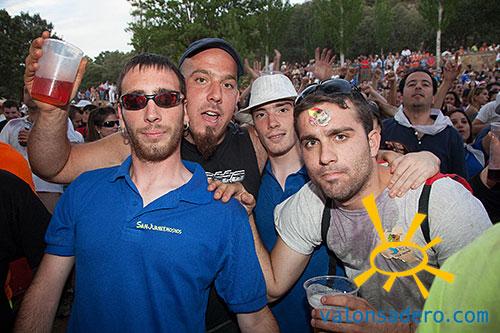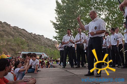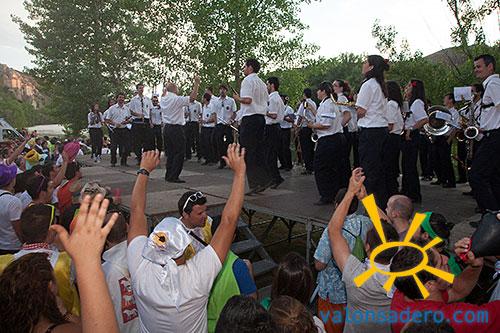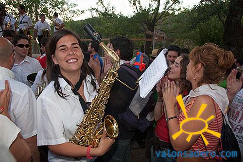 Tras llegar a las bailas la gente se dispersa por el entorno. La mayoría merienda el ya típico bocadillo individual, pero alguna familia conserva aún la tradición de la merienda conjunta con la tajada de toro como plato principal. La Banda de Música toca el repertorio en la pradera, donde son vitoreados por todo el público que sigue las sanjuaneras con absoluta devoción.