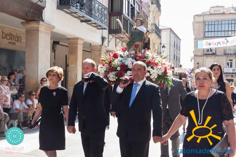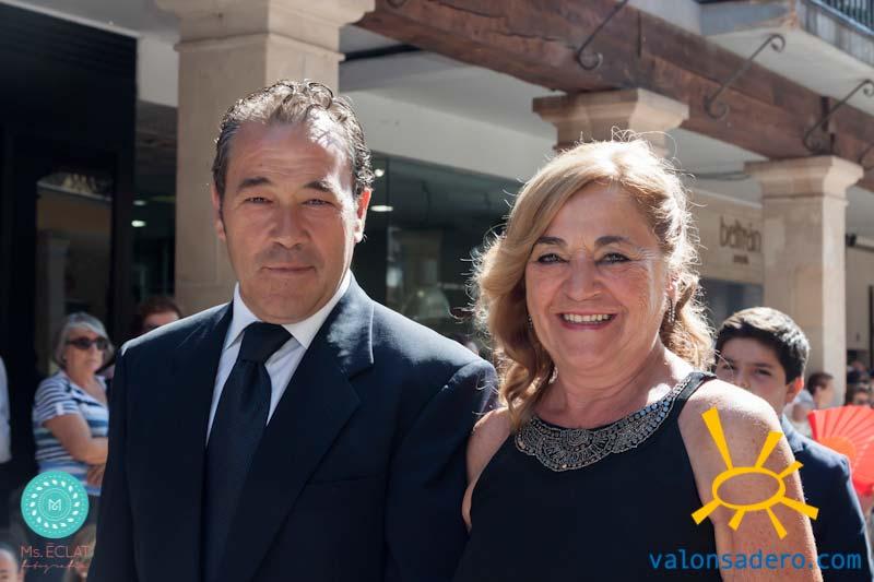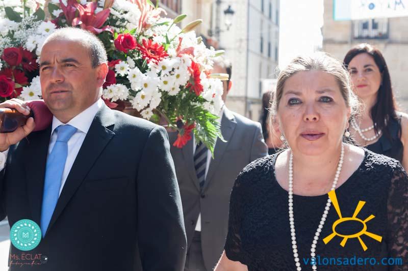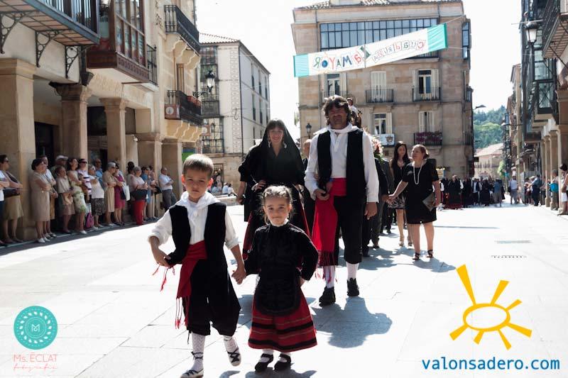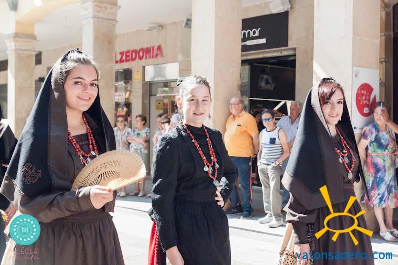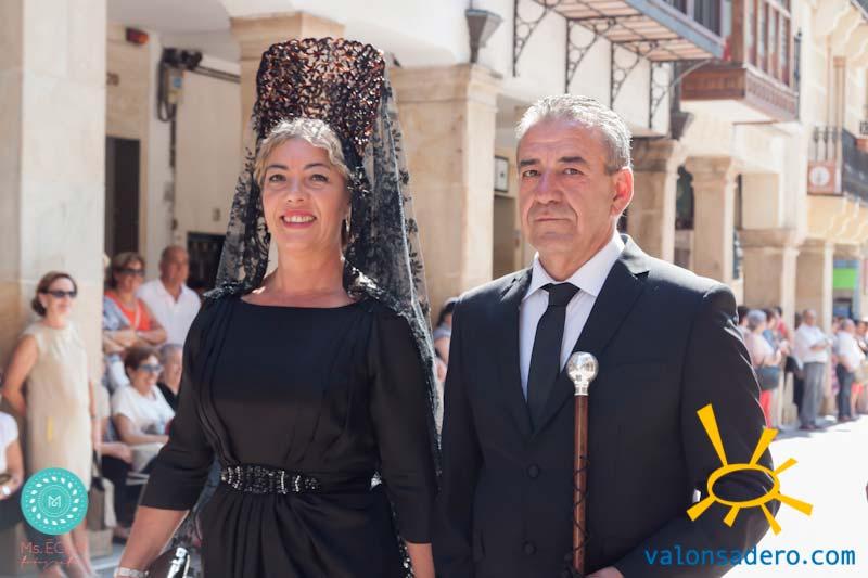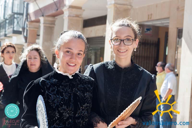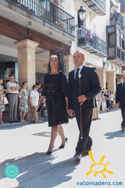 Solemne desfile de Lunes de Bailas, desde la plaza Mayor a la "Soledad", los jurados de cuadrilla en procesión con sus respectivos santos.