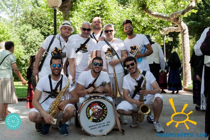 La banda de música, los piñorros, autoridades, charangas y el abanico les acompañan.