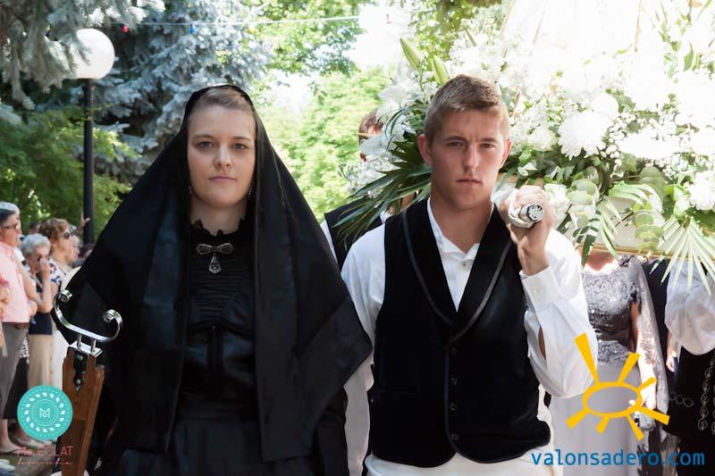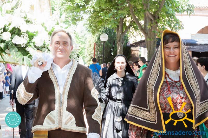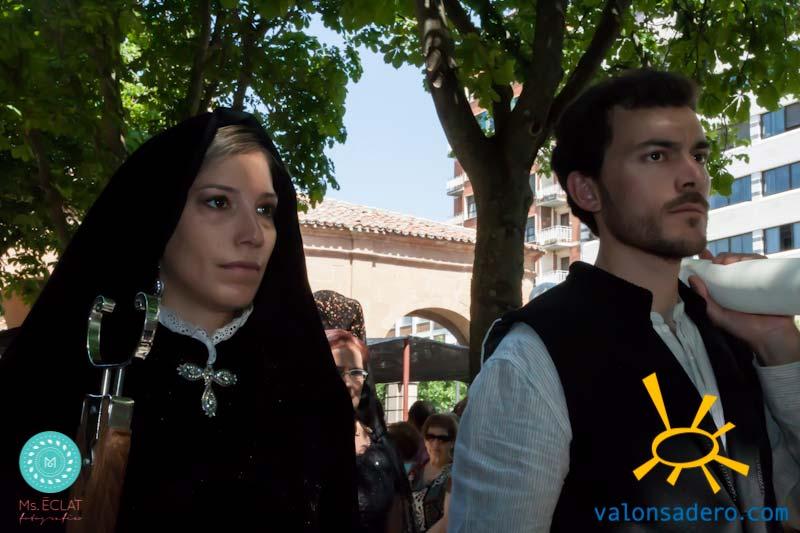 Solemne desfile de Lunes de Bailas, desde la plaza Mayor a la "Soledad", los jurados de cuadrilla en procesión con sus respectivos santos.