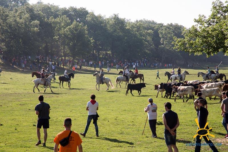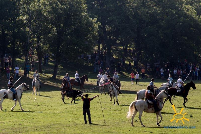 Encierro del Lavalenguas por la mañana, primer contacto de los caballos con los novillos. Paseillo de los jurados con su correspondiente sorteo y celebración del Lavalenguas.