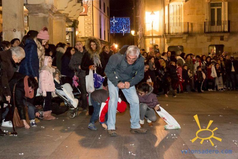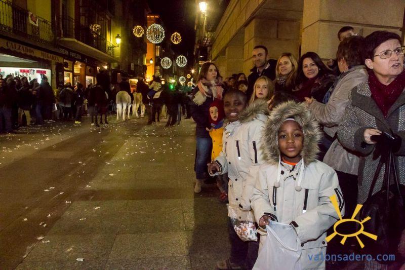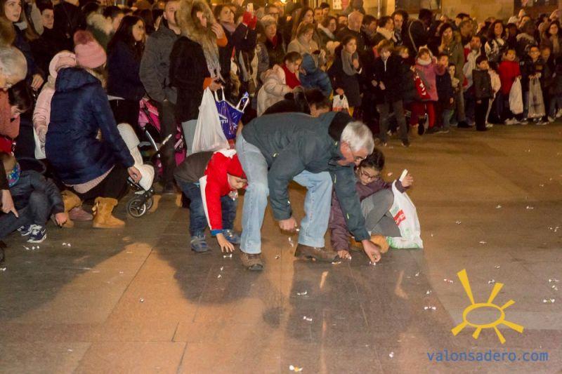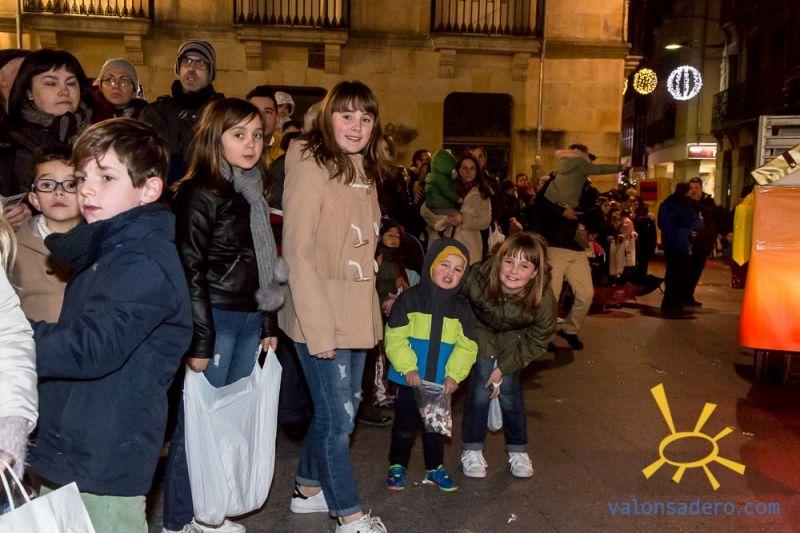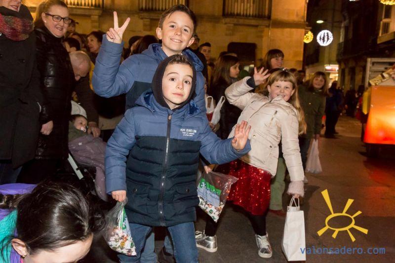 Cabalgata de Reyes en Soria, las carrozas con sus majestades y todos los niños que les acompañaban.
