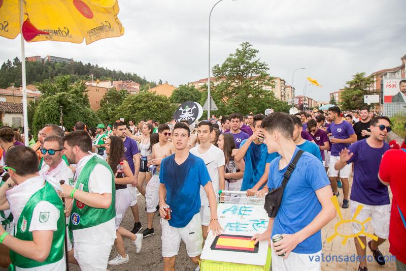 Desfile de la banda municipal y bajada a las bailas de la peñas.