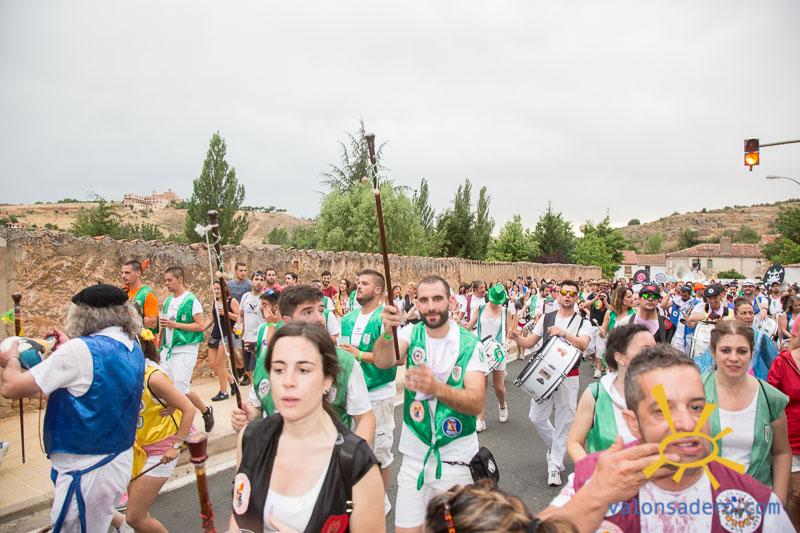 Desfile de la banda municipal y bajada a las bailas de la peñas.
