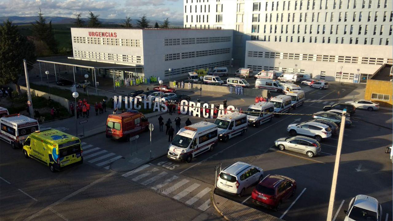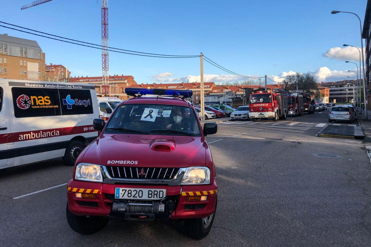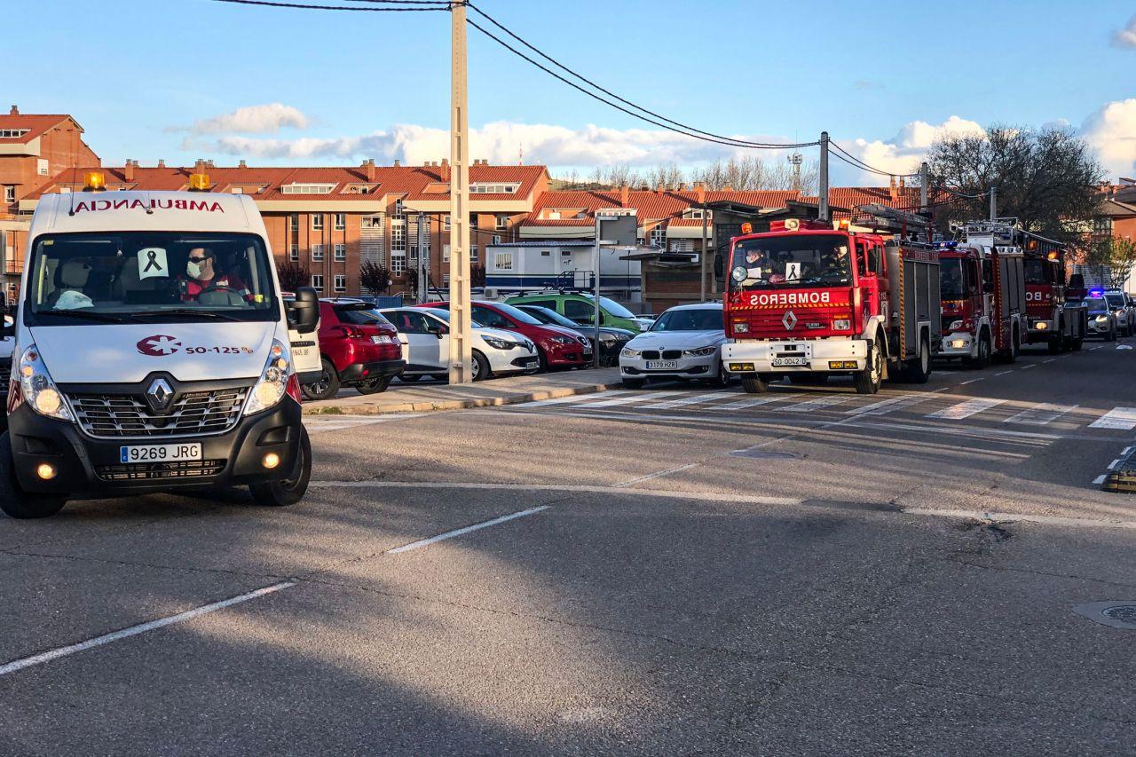 Caravana silenciosa con todos los cuerpos de seguridad al completo hasta el Hospital Santa Bárbara donde tras los aplausos, se guardó un minuto de silencio por todas las víctimas de la pandemia. A última hora se encendieron las sirenas como despedida y se alargó la vuelta bastante más que otros días.