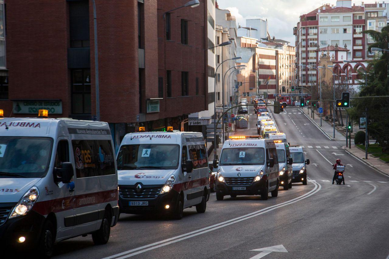Caravana silenciosa con todos los cuerpos de seguridad al completo hasta el Hospital Santa Bárbara donde tras los aplausos, se guardó un minuto de silencio por todas las víctimas de la pandemia. A última hora se encendieron las sirenas como despedida y se alargó la vuelta bastante más que otros días.