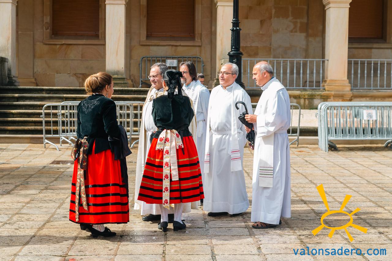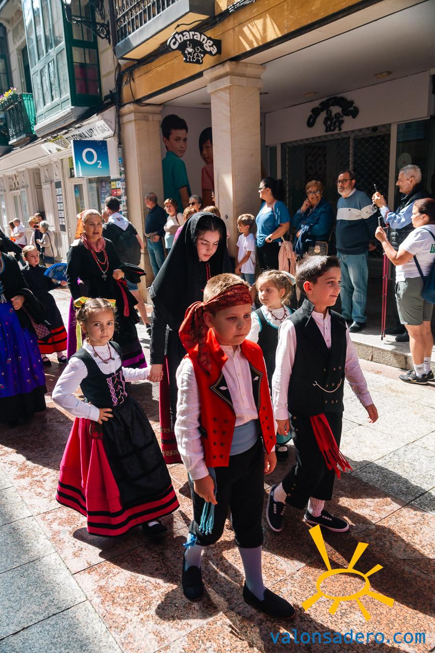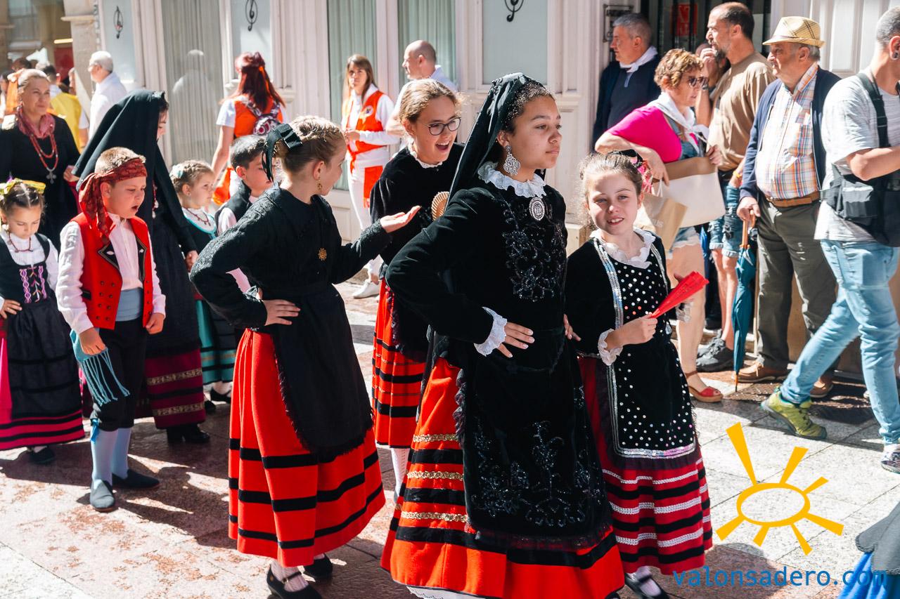 Las piñorras tuvieron que cambiar sus abanicos por paraguas en este lluvioso Lunes de Bailas 2023. Fotos S. de Miguel