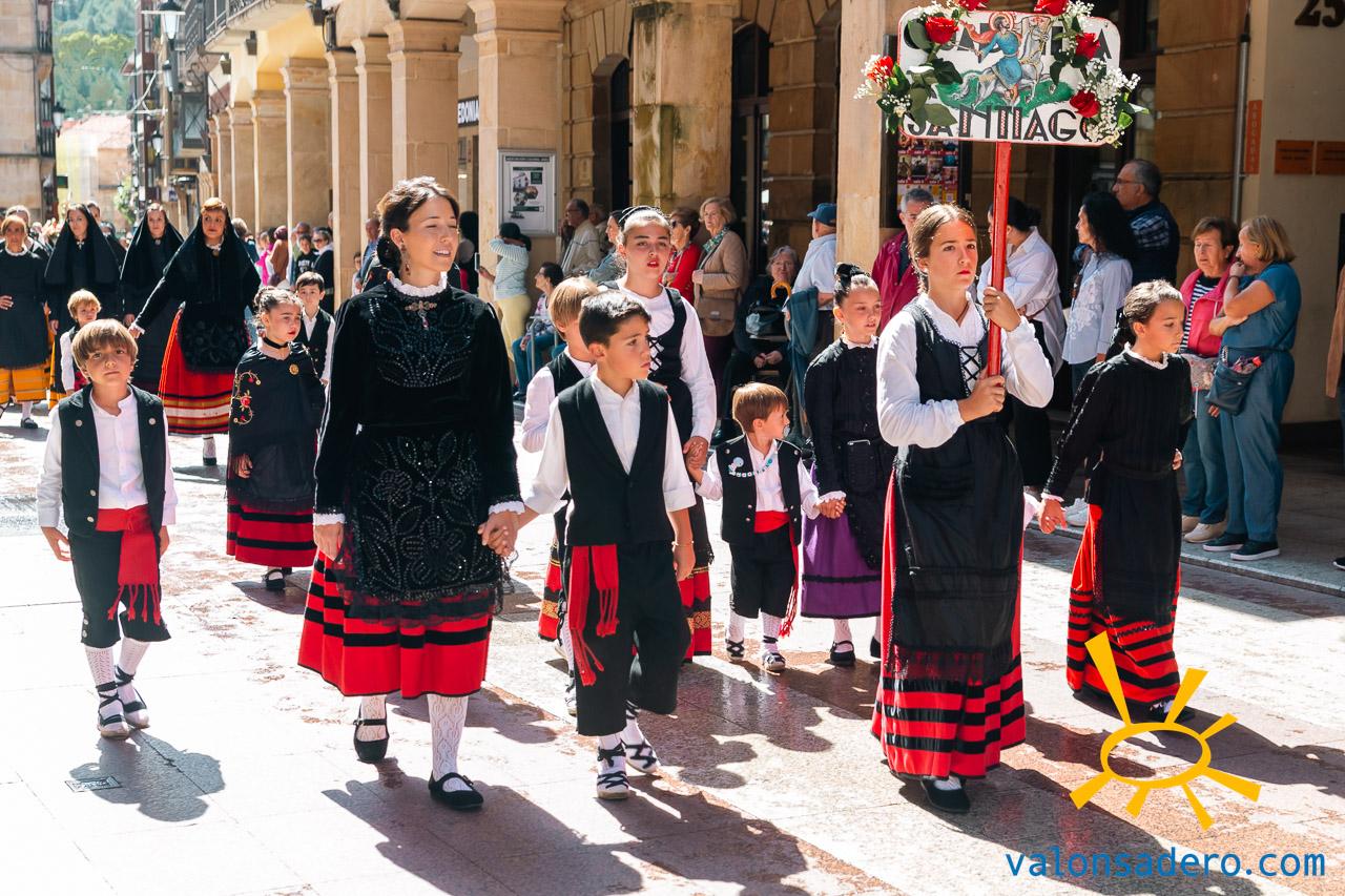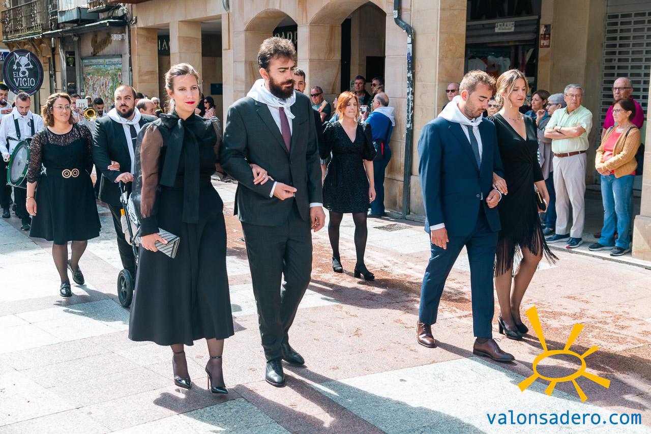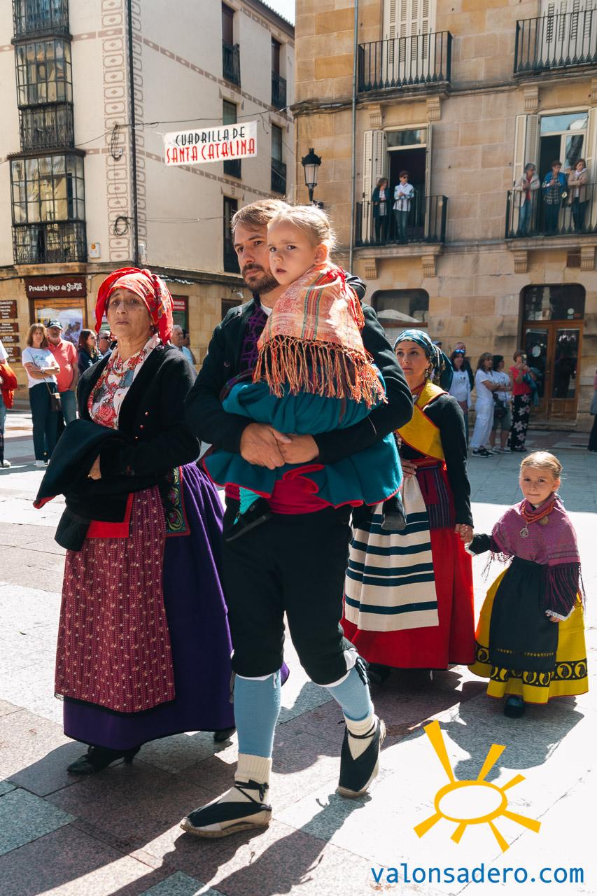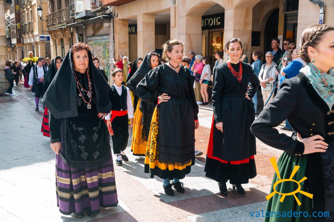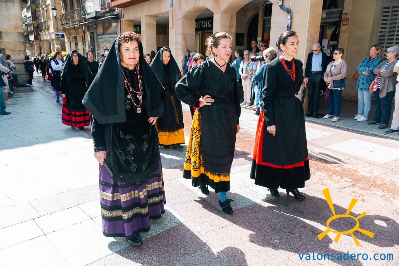 Las piñorras tuvieron que cambiar sus abanicos por paraguas en este lluvioso Lunes de Bailas 2023. Fotos S. de Miguel