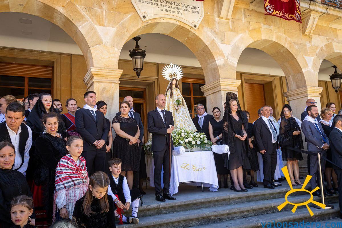Procesión en la mañana del Lunes de bailas, desfile con los santos de las cuadrillas hasta la ermita de la Dehesa y vuelta a la Plaza Mayor para homenajear a la Virgen de la Blanca, miles de sanjuaneros de todas las cuadrillas y peñas participan en el acto