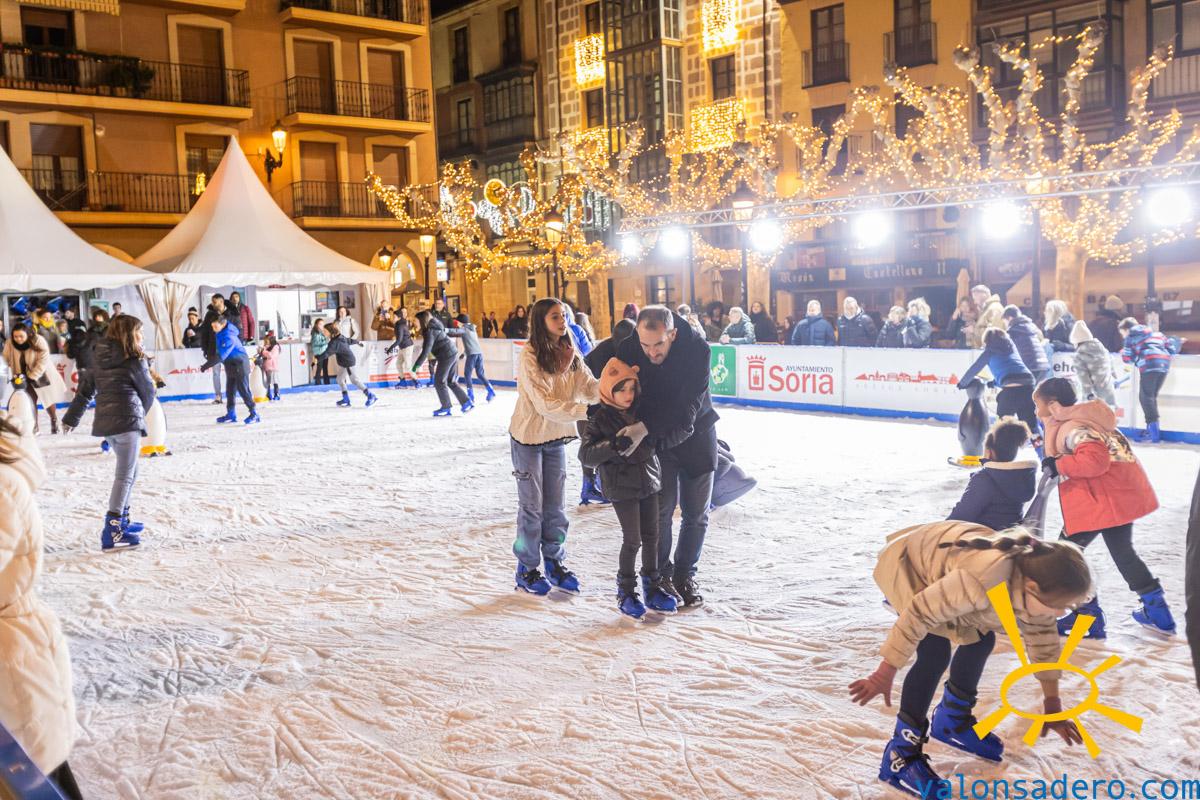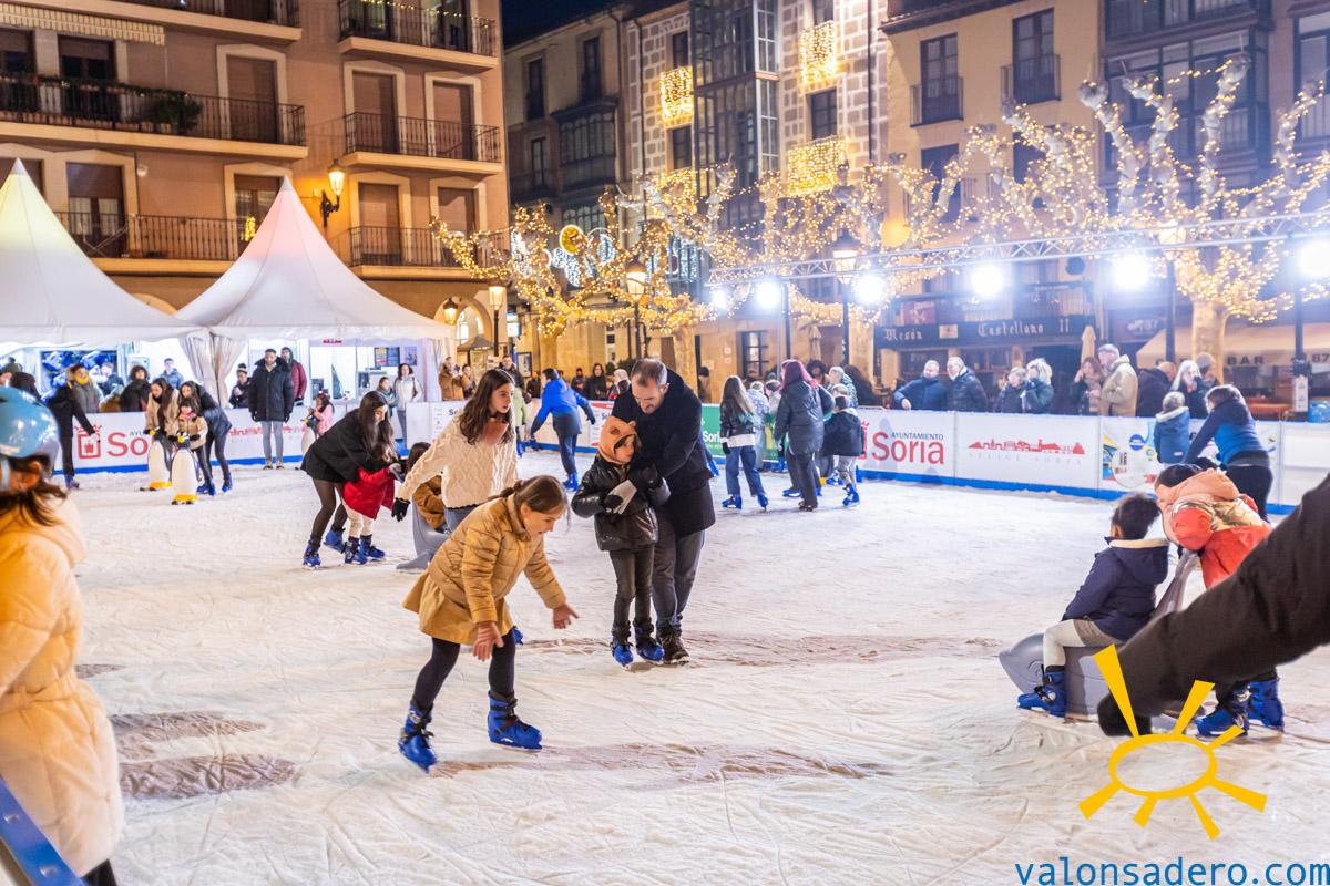 Ya es Navidad en Soria y la gente visita el belén y la pista de patinaje en una Plaza Mayor que se llena de vida y alegría estos días